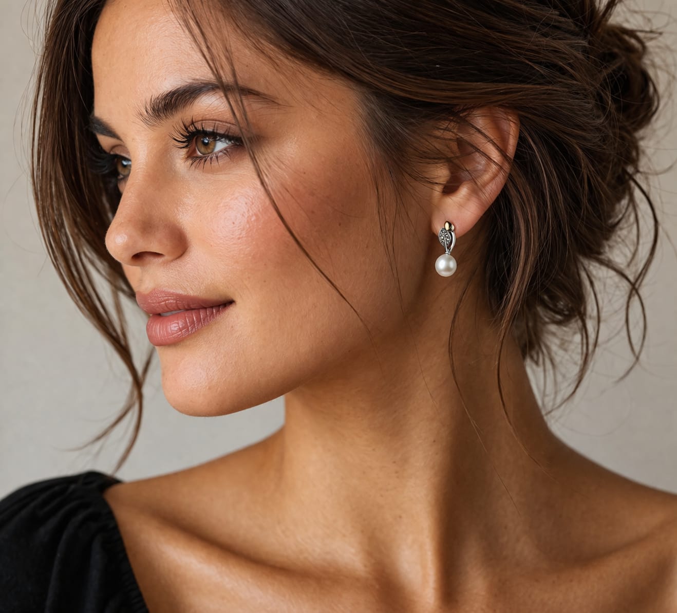 Brincos em Prata com Ouro 375 folha com Marcassites e Pérola