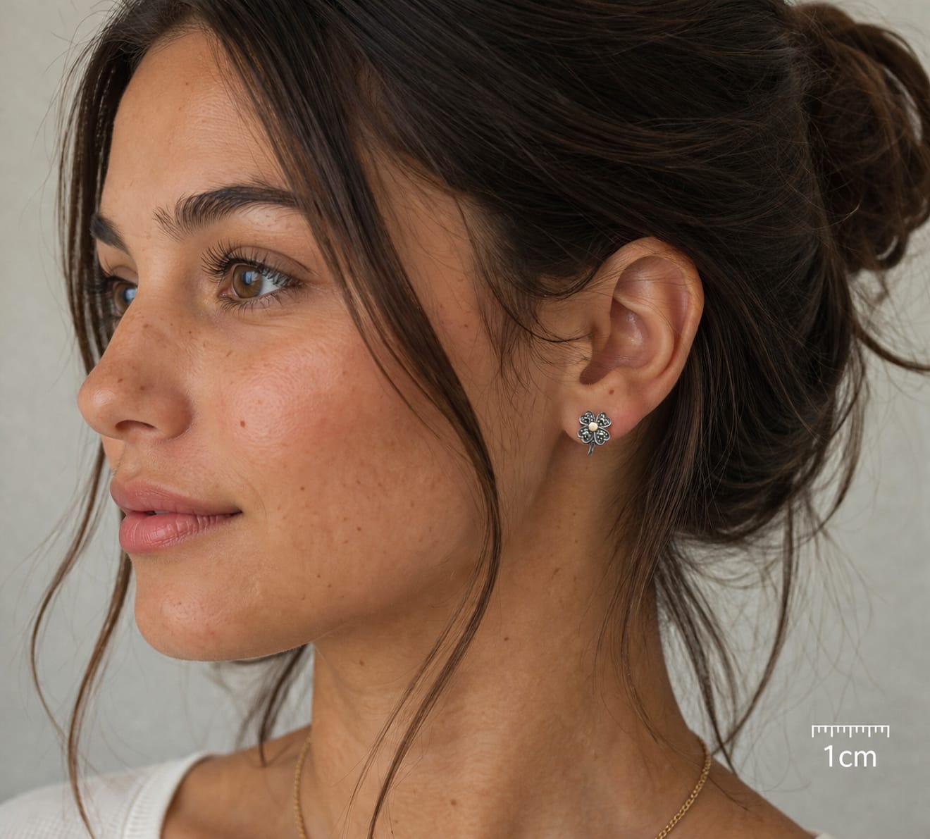 Brincos Trevo aproximadamente 10mm em Prata com Ouro 375 e marcassites