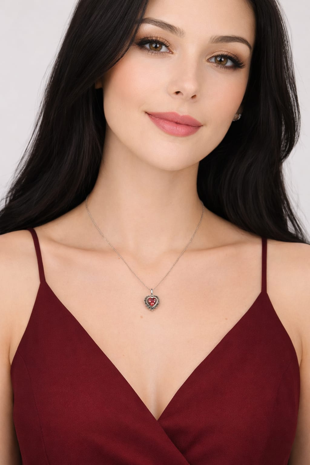 Colar de Prata com Medalha Coração em Prata cerca de 2.0cm com Ouro 375 e marcassites com zircónia Vermelha