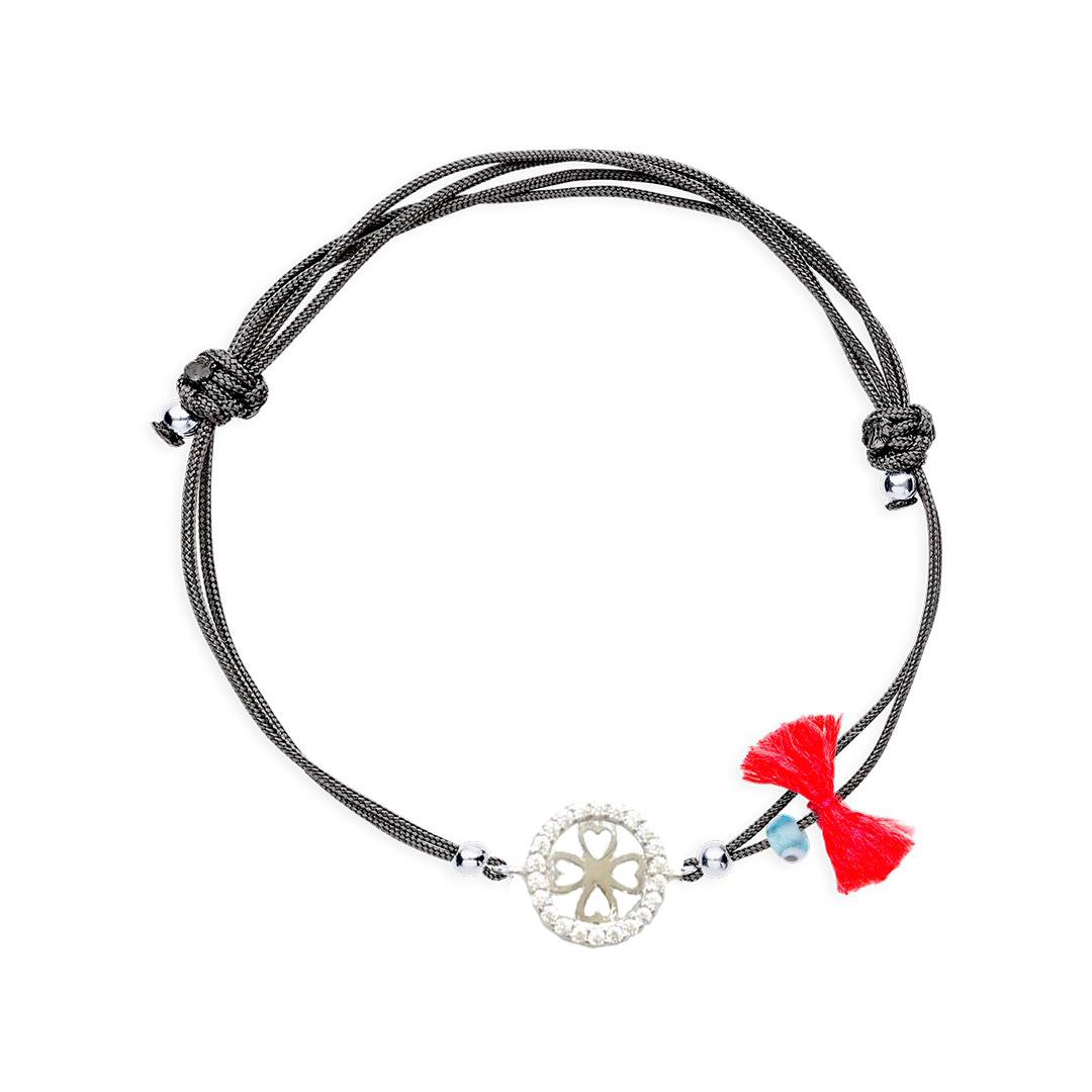 Pulseira algodão Trevo círculo com Zirconias